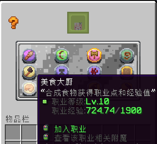 鼠标左键加入你喜欢的职业,右键查看该职业的相关附魔信息