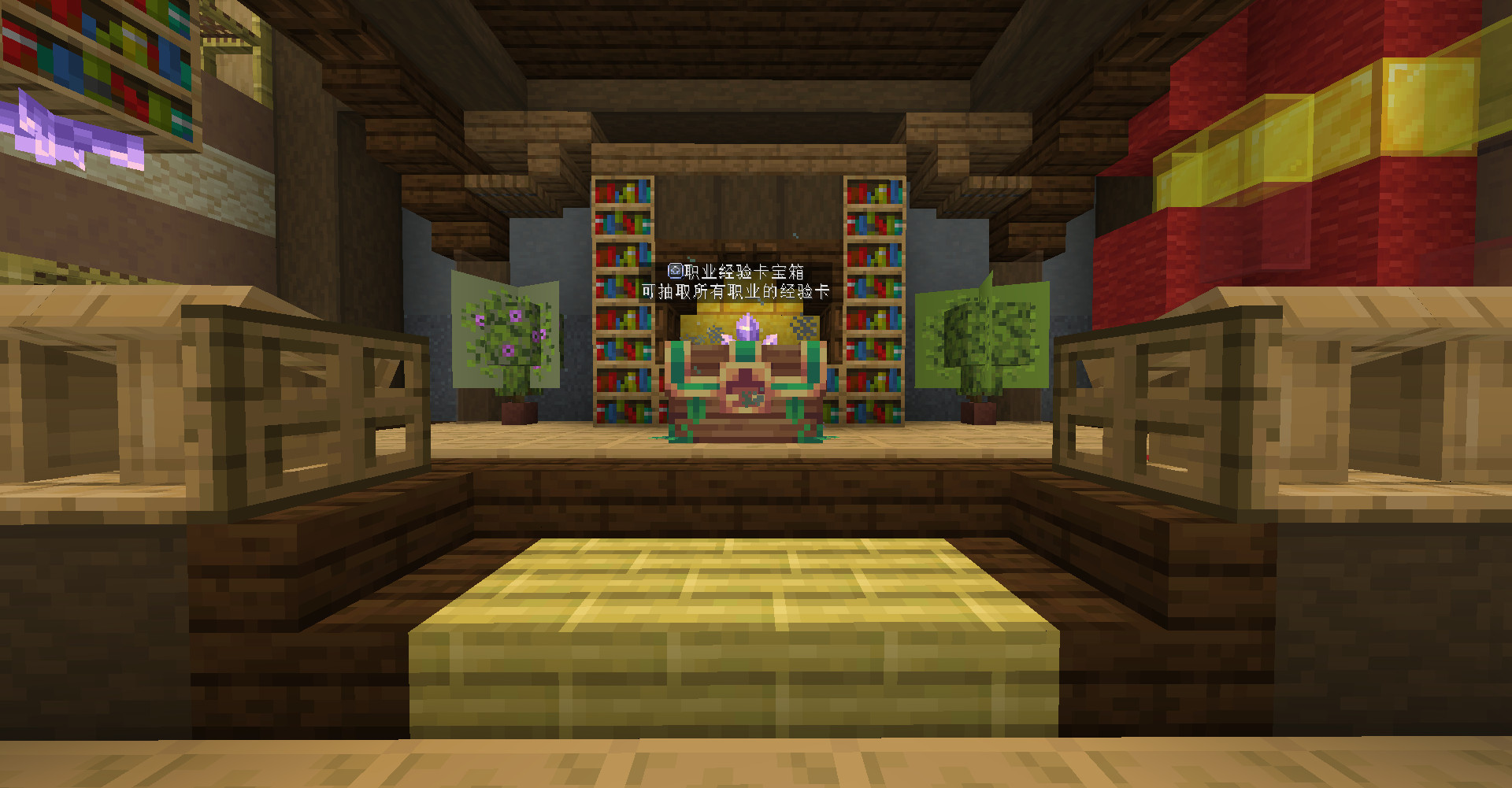 | 装修师 | decorator | 放置羊毛和地毯、火把、末地烛、南瓜灯、海晶灯、菌光体、红石灯、蜡烛、蛙鸣灯、灯笼、紫水晶块、书架、雕纹书架、画、盔甲架、床、营火、熔炉、工作台、箱子 | 胸甲 |